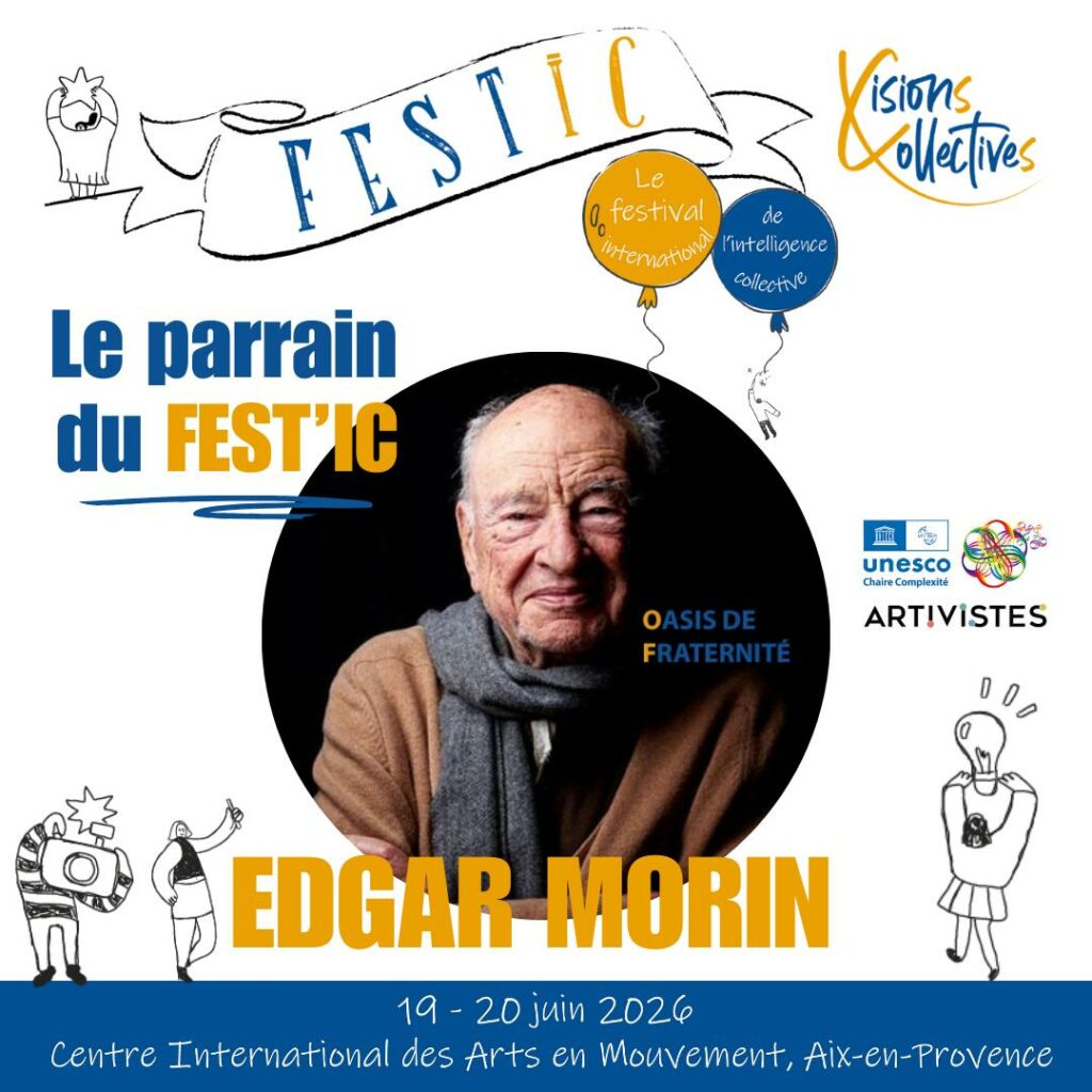 Parrainé par Edgar Morin, le FEST’IC vous invite à vivre une expérience unique : celle d’une oasis de fraternité éphémère où nos différences deviennent une richesse pour penser, créer et agir ensemble.